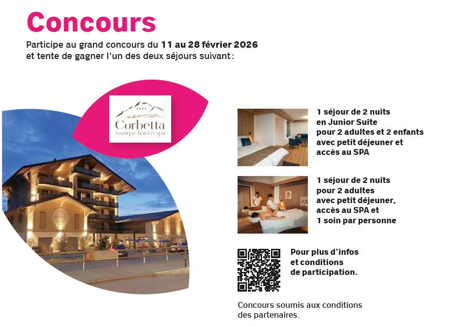 Du 11 au 28 février, participe à notre grand concours et tente de remporter 1 séjour duo ou 1 séjour en famille.